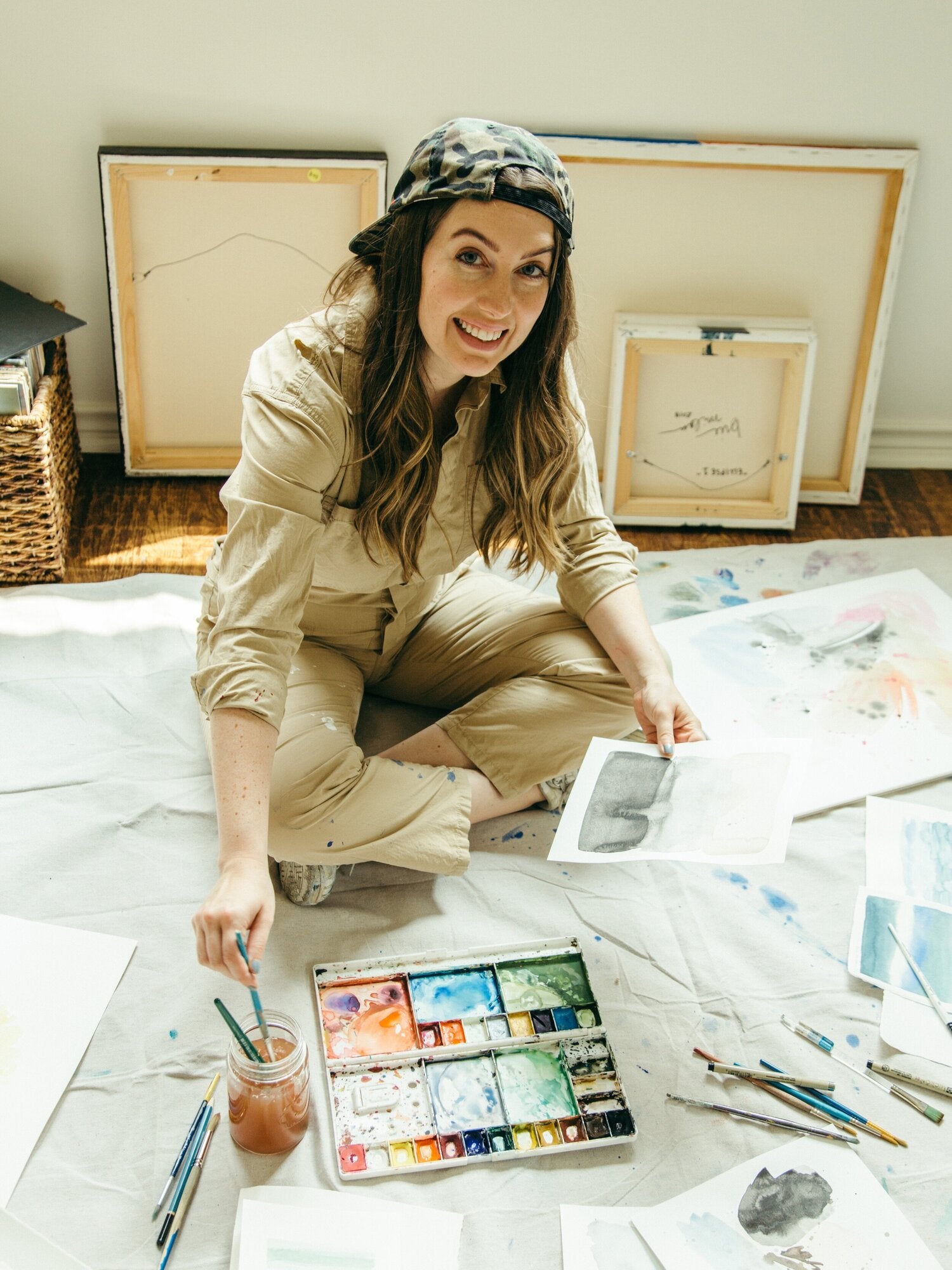 Brie Milam a watercolor and abstract artist working from her home studio, “The Treehouse,” in Dallas, TX. Her work is filled with expressive and minimalist abstract pieces, illustrations, and artwork inspired by nature. Her work tends to center on mindfulness, empowerment, and mental health — mainly because these subjects were so important in her journey to becoming an artist.