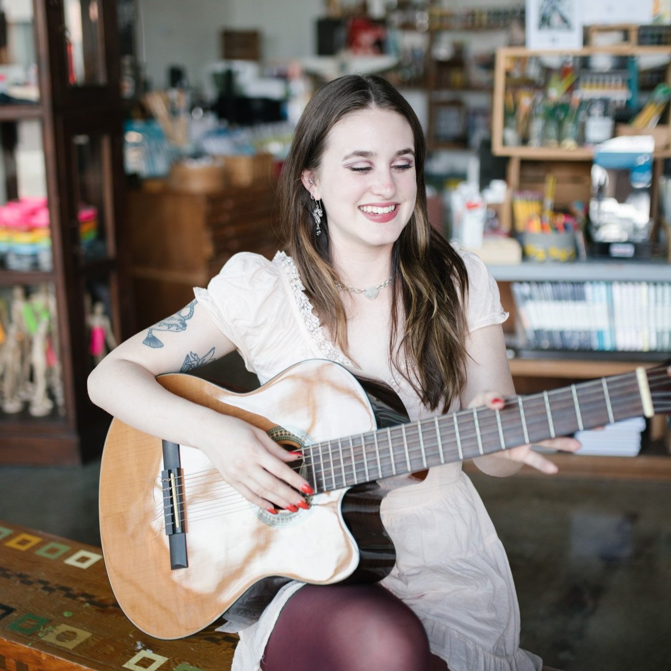 She began her relationship with Oil and Cotton when she was 16, a sophomore in the music department at Booker T. Washington High School for The Performing and Visual Arts. There, she studied guitar and contemporary music composition. Her love for performing and songwriting allowed her to intern with Oil and Cotton in highschool. Later, she received a BFA in sculpture at Kansas City Art Institute.