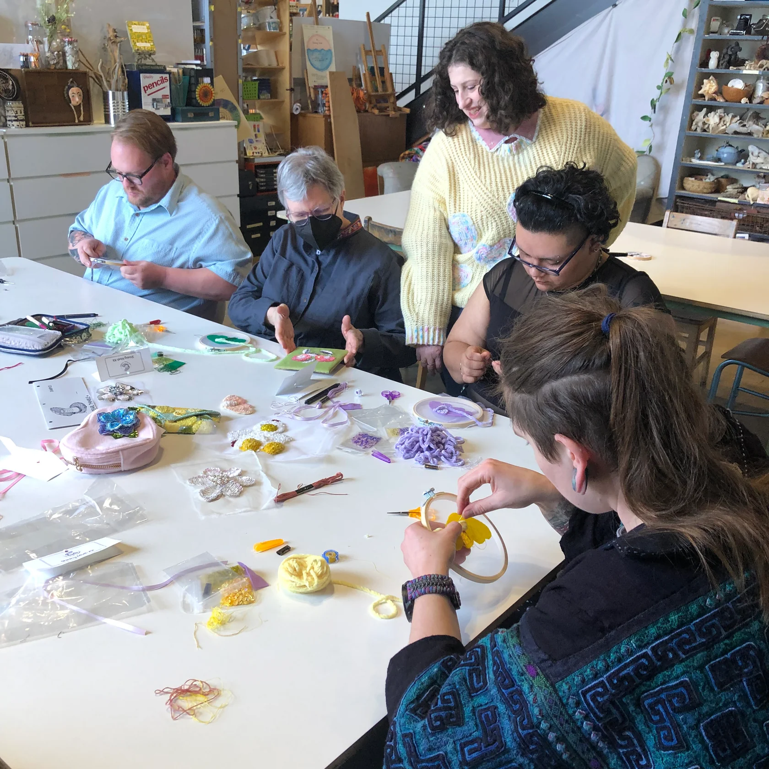 Natalie Salhanick is an internationally trained couture embroidery artist located right here in DFW. She specializes in advanced fashion embroidery techniques, tambour embroidery, and traditional surface embroidery. I've done it all from teaching beginners embroidery to intensive couture workshops in Europe. There's nothing she won't try to add some sparkle and luxury to. You can expect to learn modern and unique embroidery styles using traditional and historical techniques from her classes.