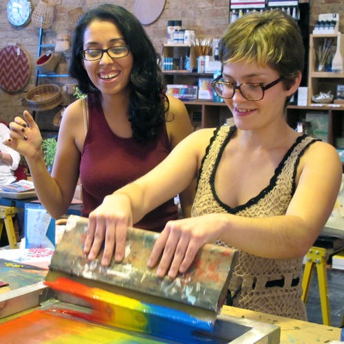 During this week-long graffiti art camp artist and Oil and Cotton teacher, Jessica Trevizo taught the art of silkscreen printing and how to make wheat starch and paste posters. 2012.