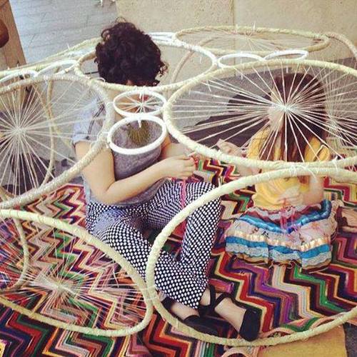 GROW program – Invited to be a part of the Nasher GROW program, Oil and Cotton created space dedicated to the ins and outs of WEAVING!!! Participants were invited to join a weave-in a hang out in our LOOM DOME. Fiber artists lead families through three weaving projects: a sculptural wire basket, a shag necklace and circular looms. 2014.