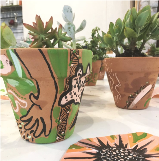 Each party guest is given a terra-cotta pot and asked to paint a symbol or shape that represents them and paints it on their pot! Then we, "Pass the Pot" and the next person adds their symbol, until each pot has made its way around to everyone. Guests leave with a pot that has each member's symbol. This relaxing, fun and bonding activity culminates with planting a succulent in each pot!