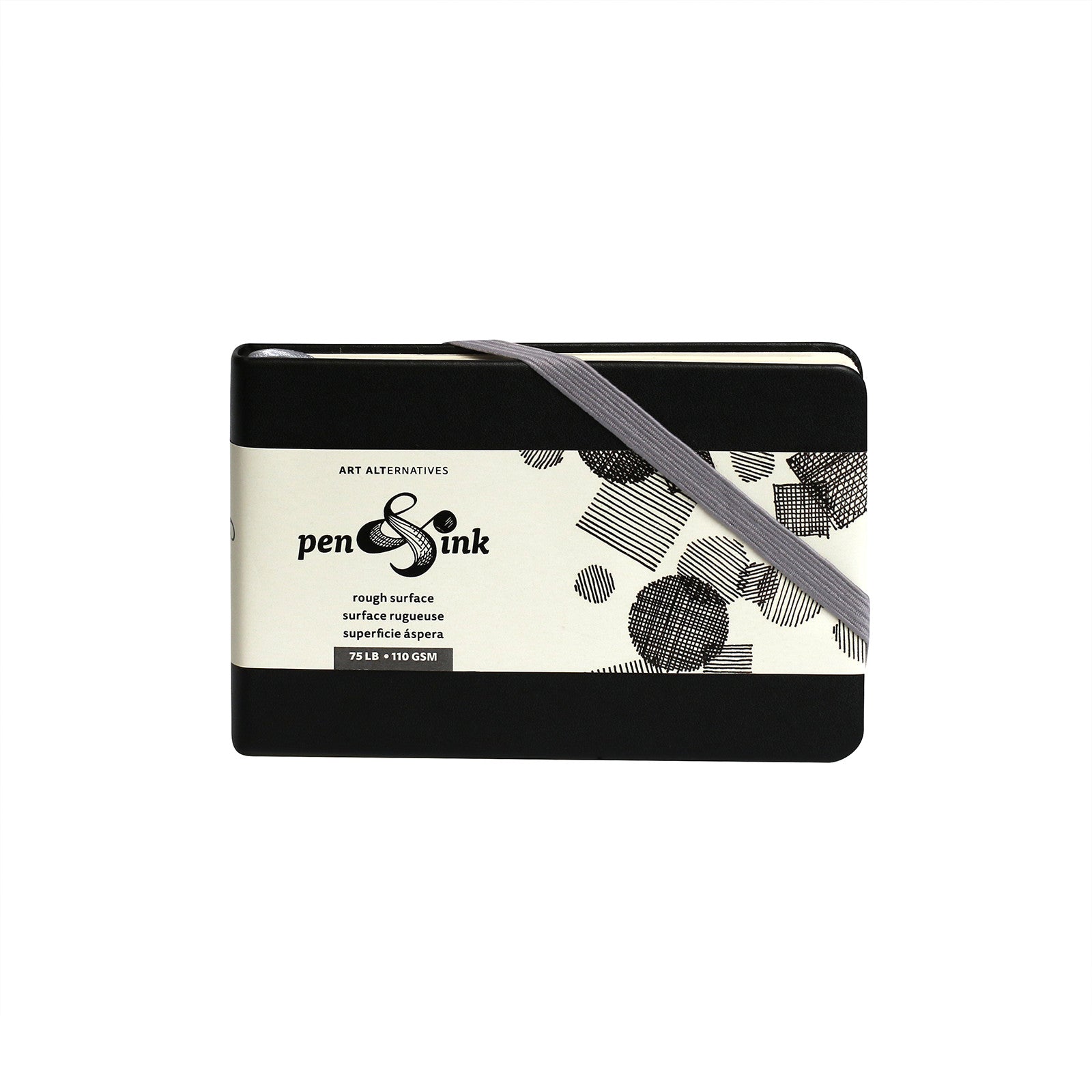 A selection of pocket-sized, hard-bound books with blank, lined or grid printed pages; perfect for sketching, doodling, writing or taking notes in pen, marker or pencil. Each book features a bookmark, an expandable inner pocket and an elastic closure. The blank, lined and grid books feature a smooth surface with 54 lb. (80 gsm) or 98 lb. (145 gsm) paper. The graph sketch book features a printed grid of 5mm squares. The blank books with rough surface paper feature 75 lb. (110 gsm) paper.