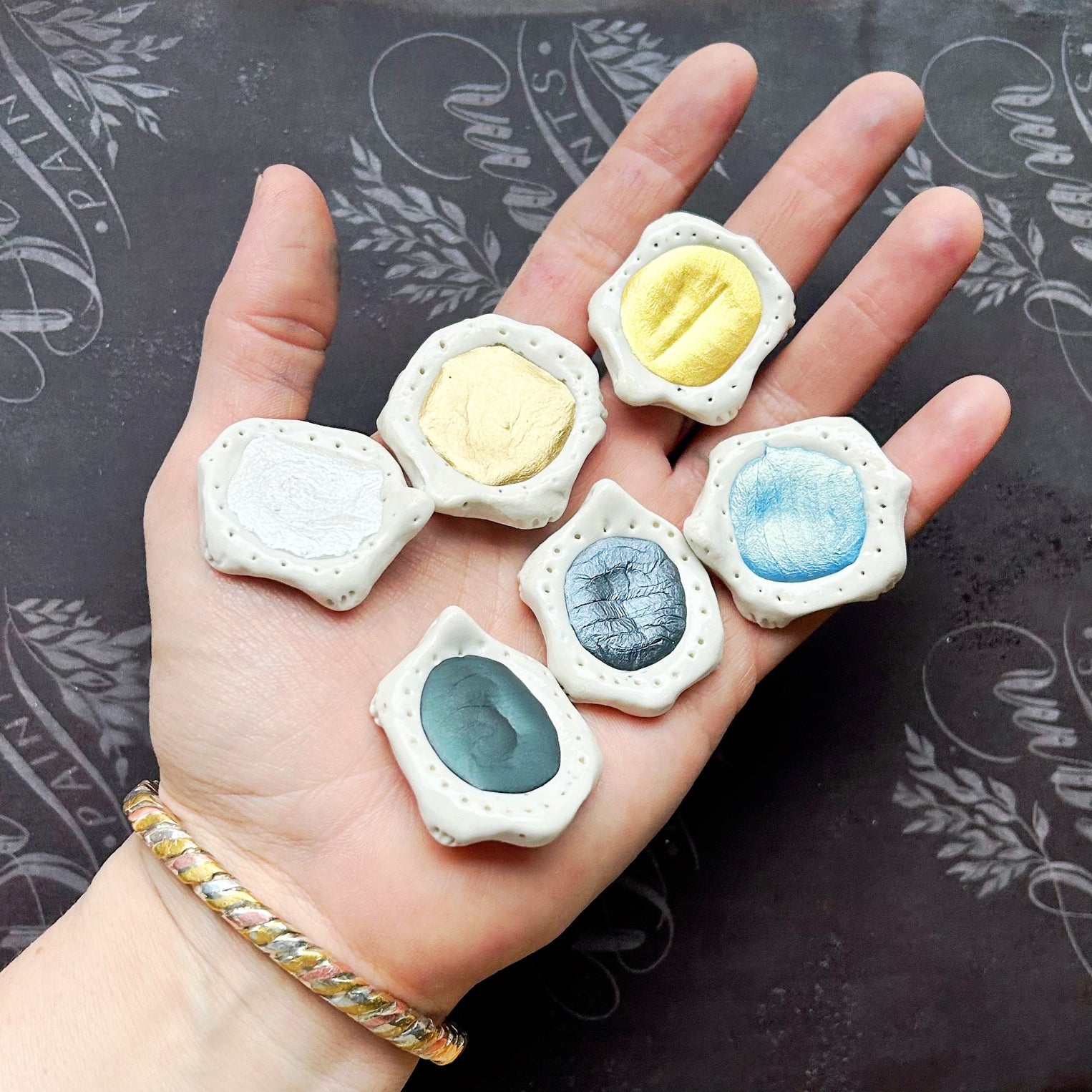 Little handmade porcelain turtles filled with a full shell made of watercolour! Fit in the palm of your hand!