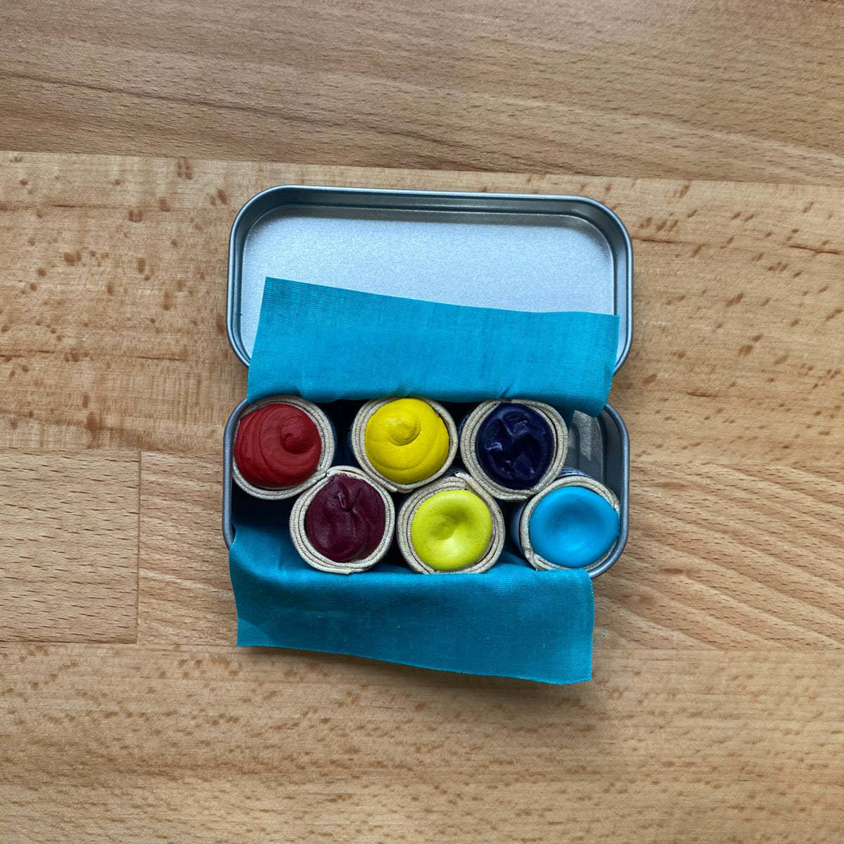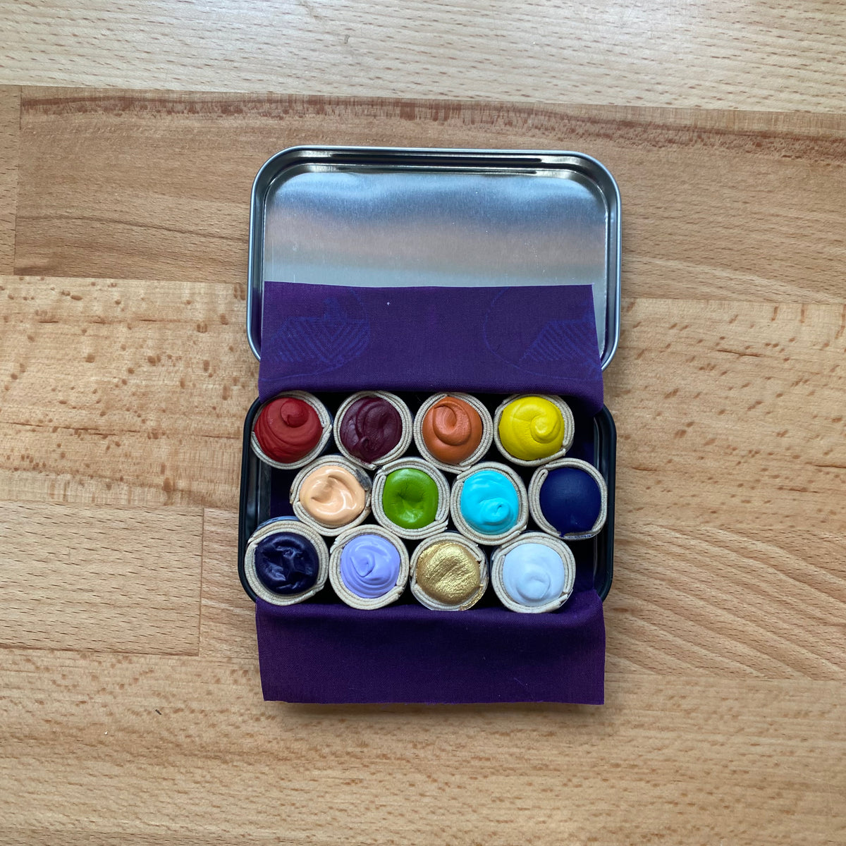 Finally! We have them! Empty tins for 12 or 6 paintstones, each tin comes with a beeswaxed cloth to keep your colors snug!