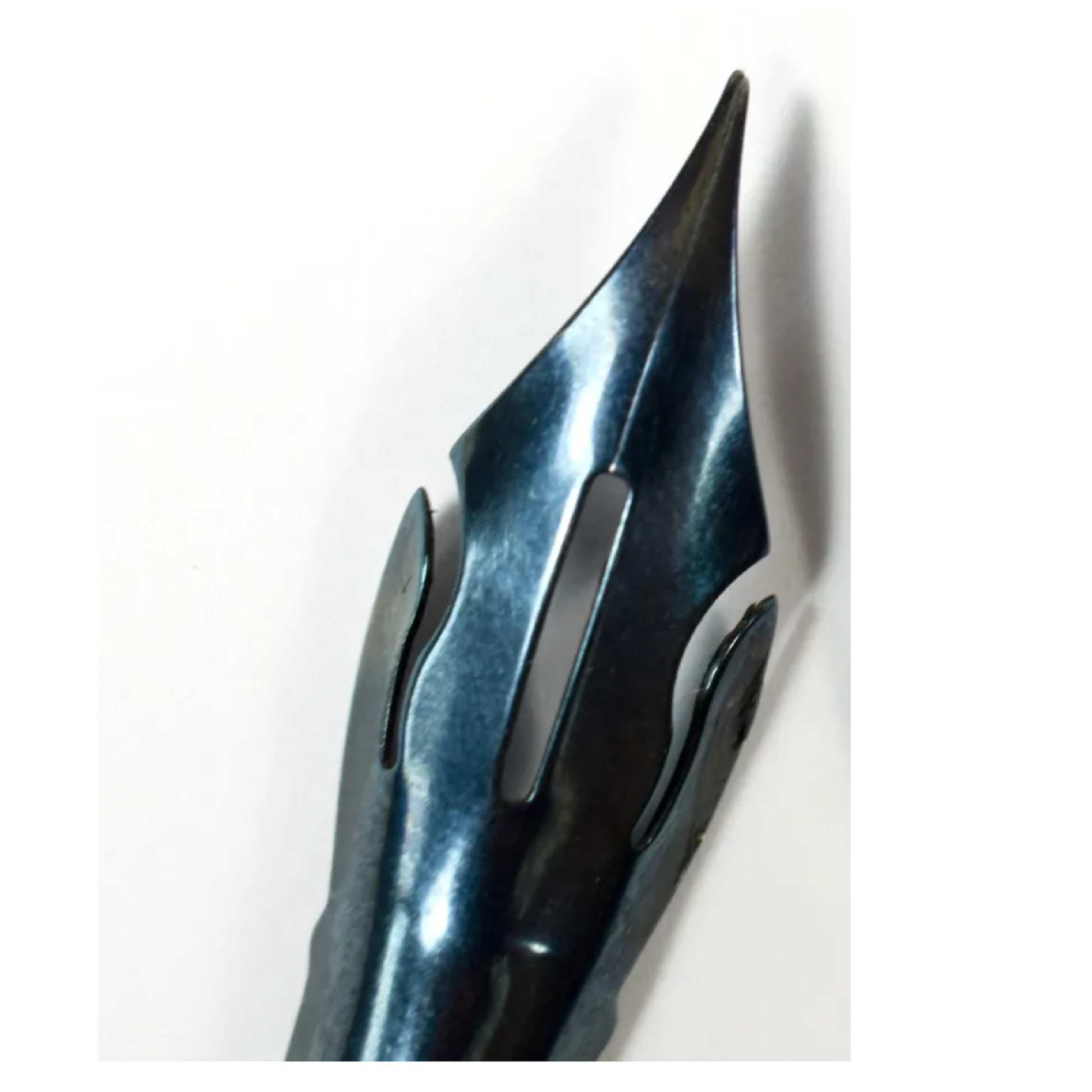 Our 'Steno" nib is referred to as "Blue Pumpkin" due to its color and shape. Very fine point and highly elastic with high ink capacity and easy ink flow.