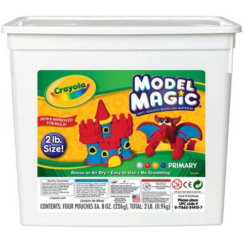 Assorted Colors: The ultimate modeling material for a wide range of hands-on learning projects and sculpting activities. New colors can be blended by mixing colors thoroughly, or stop mixing part way to create marbled effects. Great for teaching color theory and for creating colorful 3-Dimensional projects. Air dries to a smooth, resilient finish. Includes (4) 8 oz packs: Red, Yellow, Blue, White model magic.