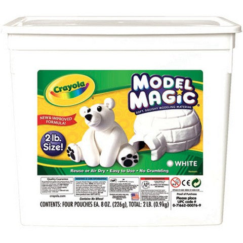 Modeling compound is an exciting, non-toxic modeling material that is easily manipulated and joined to make any form or shape. Remarkably lightweight, clean and resilient, Crayola Model Magic modeling compound is non-crumbling and it doesn't cling to skin or room surfaces. It can be attached to plastic, wood, cardboard and other materials. Model Magic® is available in various colors. It is easily paintable after it has dried for 24 hours. Crayola® compound dries to a resilient consistency within 24-36 hours, without kiln firing.