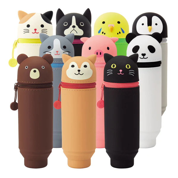 These cases are the perfect companion for any stationery lover. Each case can be zipped closed for easy transportation, and transformed into a pen cup to hold favorite pens and pencils upright on a desk when you're ready to use them. Simply place your writing supplies in the body, your eraser in the elastic on the top, and zip closed. When you want to use the contents, open the case, press the bottom down on a desk, and watch the case transform into a cup that pushes your writing supplies upward to make then easy to see and use. This product is made from silicon.