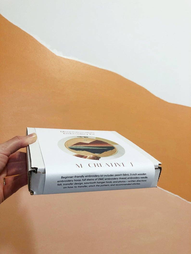 Inspired by a longing for the great outdoors, this desert and mountain landscape embroidery kit infuses a bit of whimsical wanderlust into your home without ever having to pack a bag or hop on an airplane. Each embroidery kit is beginner friendly and includes materials to create a 5-inch embroidered design.