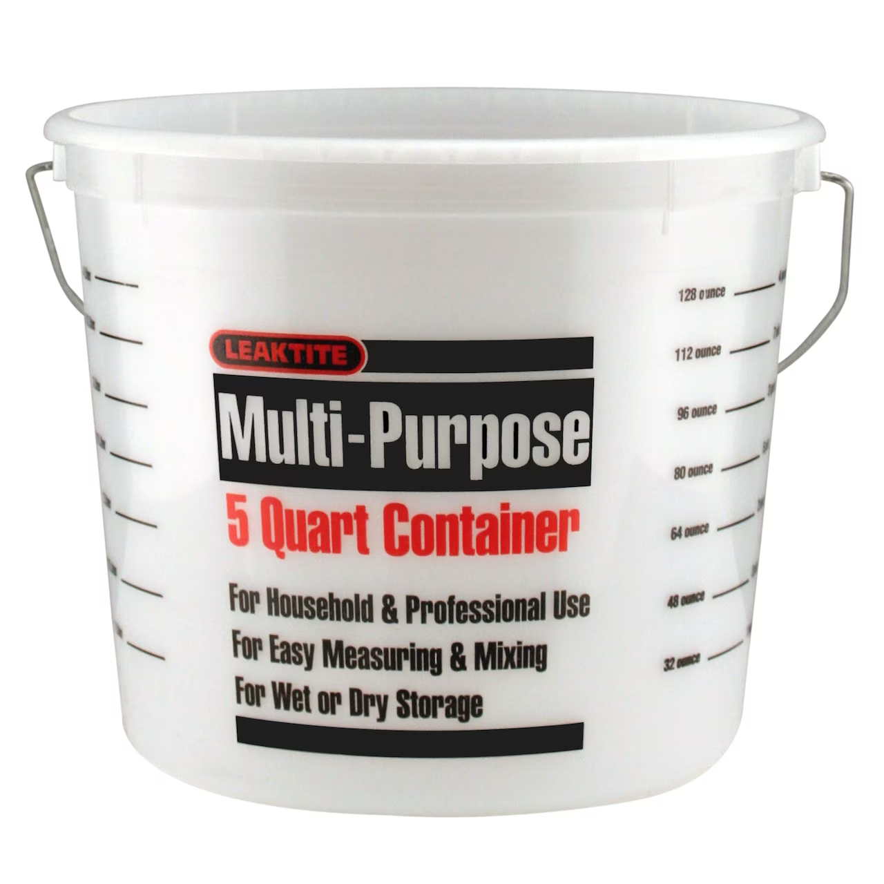 This heavy-duty, high-quality polyethylene pail has a plastic reinforced rim for maximum strength and reinforced "ears" to better secure the handle to the bucket for added durability. This natural pail is solvent-resistant and has liter and quart calibrations.