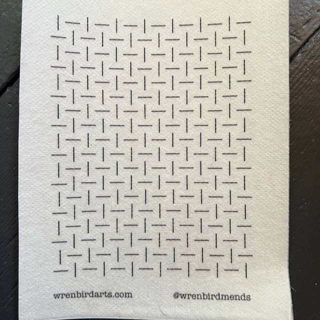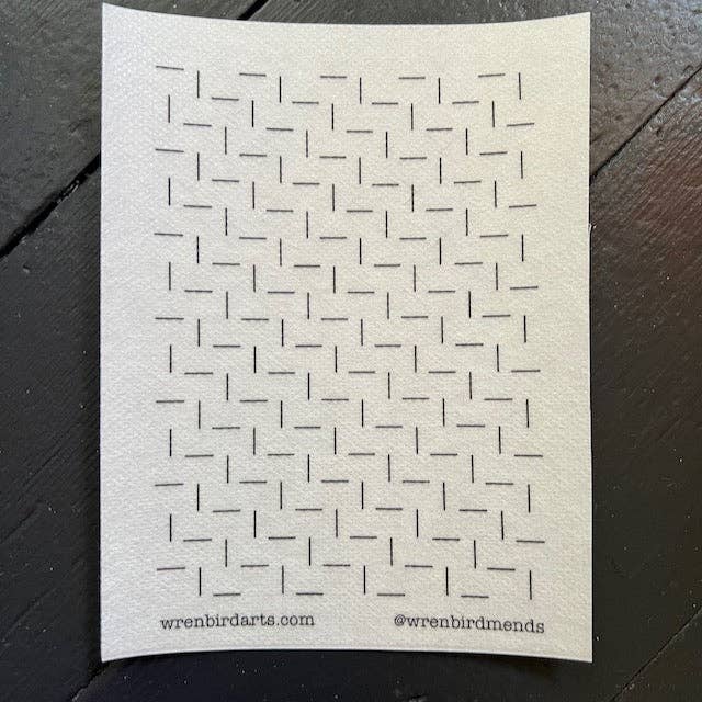 I created these water-soluble mending transfers for people like me who are looking for an easier way to transfer a beautiful pattern. No need for rulers and pencils, tracing paper, or an iron. Stick the transfer to the area to be mended, stitch the pattern, and then rinse off the sticker, and reveal your precise stitched pattern.