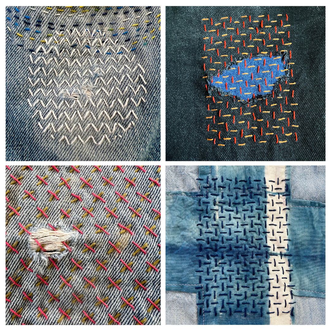 The 10th set of visible mending patterns is a celebration of fiber arts. Each of the 4 patterns in this set represents different fiber arts: cross stitch, weaving, knitting, and a twill pattern found in woven textiles.
